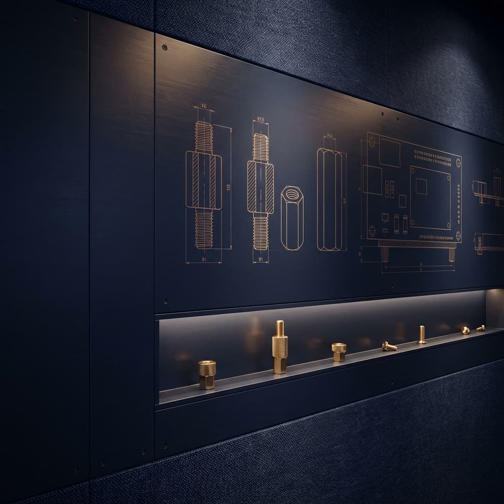 Precision brass spacers and standoffs for PCB mounting.